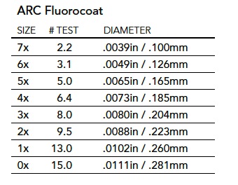 ARC Fluorocoat ist die erst Nylonschnur im Bereich des Fliegenfischens, die einen Fluorocarbon-Mantel besitzt. Diese einzigartige Schnur vereint die besten Eigenschaften beider Schnurmaterialien: Die Stärke und Geschmeidigkeit von Nylon sowie die Haltbarkeit und die geringe Sichtigkeit von Fluorocarbon. Dank dem hoch qualitativen Fluorocarbon der ARC Schnüre, behalten diese ihre Strapazierfähigkeit auch dann bei, wenn sie nass sind. Gewöhnliche Nylonschnüre verlieren ca. 15% an Tragkraft wenn sie im Wasser sind. Ausgezeichnete Knotenfestigkeit, herausragende Abriebsfestigkeit und eine super glatte Oberfläche sind einige der übrigen Vorteile dieser revolutionären neuen Schnur.