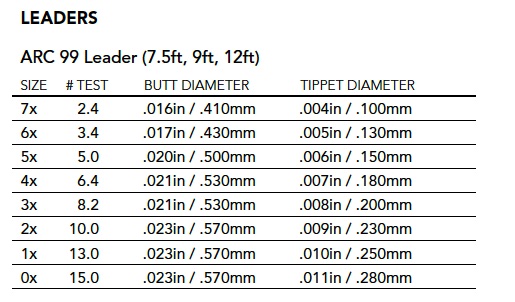 Die ARC 99 Leader sind die idealen All-Around Leader für das Süßwasser! Hergestellt unter Verwendung der modernsten Technologien und Copolymere, die derzeit auf dem Markt verfügbar sind. Eine Starke Butt-Section, die nahtlos in das Tippet übergeht, verspricht eine perfekte Präsentation in nahezu jeder erdenklichen Lage! Darüber hinaus sind die ARC 99 Leaders hoch abriebfest und sind in folgenden Längen verfügbar: 7,5ft, 9ft, 12ft. So haben Sie immer den Richtigen Leader, ganz egal welches Wasser oder Wetter, dabei!