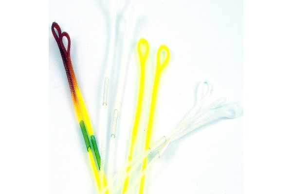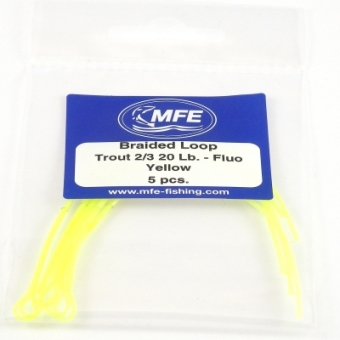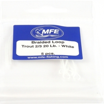 5 Braided Loops mit bereits aufgezogenen transparenten Schrumpfschlauch. Sehr robust und feinmaschig.