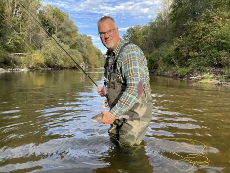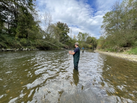 Vertrauen Sie auf unsere mehr als 40-jährige Erfahrung in der Ausbildung von Fliegenfischern! Hier in Bayern an meiner Ammerstrecke bilden wir Fliegenfischer, insbesondere Einsteiger, aus. Nicht nur das Werfen auf einer Wiese oder an einem Forellenteich, nein unter realen Bedingungen am Fluss. Nach Einleitung in die Wurftheorie, geht es rein in das Fliegenfischergewässer! Lernen Sie das Wasser zu lesen und zu verstehen, begreifen Sie das Verhalten der Fliegenschnur in Abhängigkeit von Wind und Strömung, üben Sie das Führen der Nymphe oder des Streamers in den unterschiedlichen Wassertiefen und die feine Präsentation der Trockenfliege.