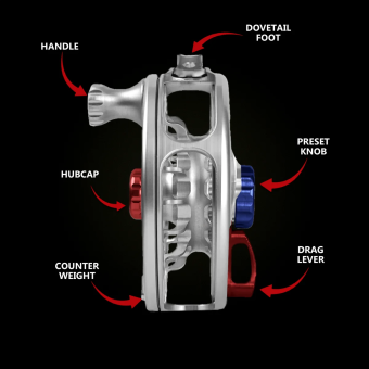 Seigler Salzwasser Fliegenrolle Silber-Rot-Blau
