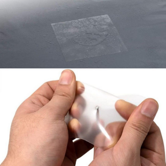 - Durchsichtig und selbstklebend: Die Flicken sind transparent und passen sich unauffällig dem Material an.
