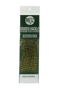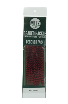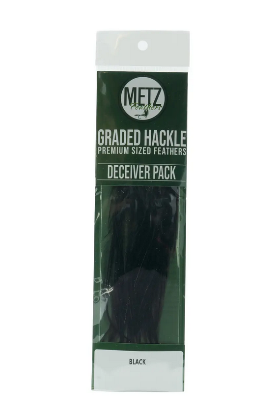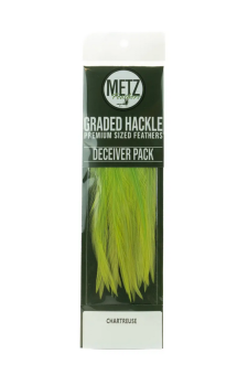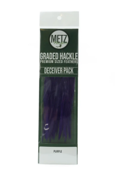 Die Metz Deceiver Packs bieten eine exzellente Auswahl an Federn, die speziell aus dem unteren Bereich des Hahnenumhangs gewonnen werden. Sie überzeugen durch ihre satten, brillanten Farben, gleichmäßige Struktur und hohe Qualität, was sie zur ersten Wahl für ambitionierte Fliegenbinder macht.
