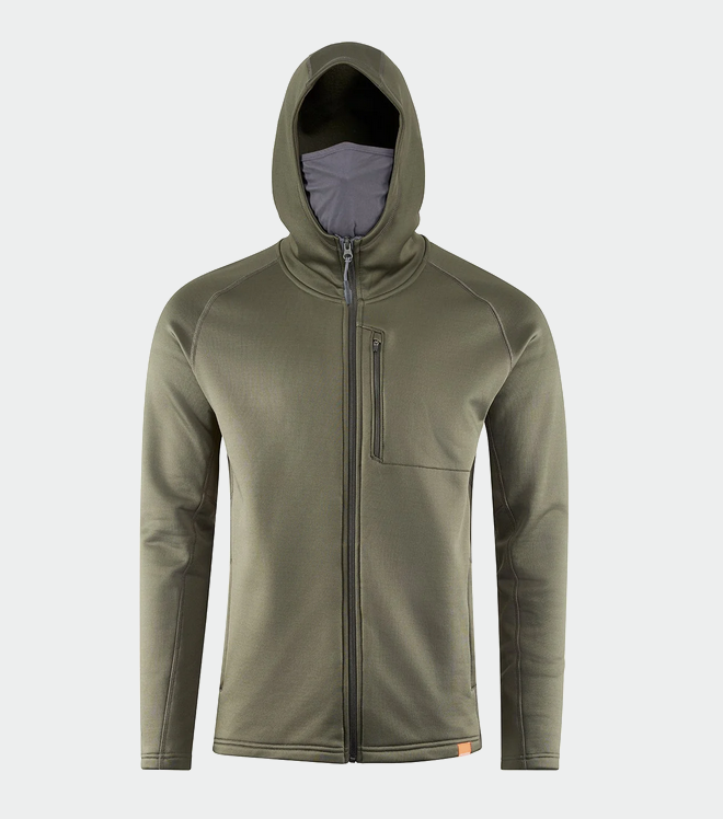 Hergestellt aus schwerem Stretch-Fleece, bietet dieser Hoodie außergewöhnliche Wärmeleistung und maximale Funktionalität. Perfekt für lange Tage am Wasser oder in rauer Natur.