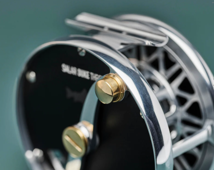 Die Duke-Serie ist eine Hommage an die große Tradition des Fliegenfischens – gefertigt aus salzwasserresistentem, matt eloxiertem Aluminium, veredelt mit Details aus echtem Messing. Die Seitenplatten zeigen sich minimalistisch und edel, das eingeprägte Lachsornament zeugt von Charakter. Und der klassische S-Handle mit elfenbeinfarbenem Knauf bringt den besonderen Charme alter Rollen ins Hier und Jetzt.